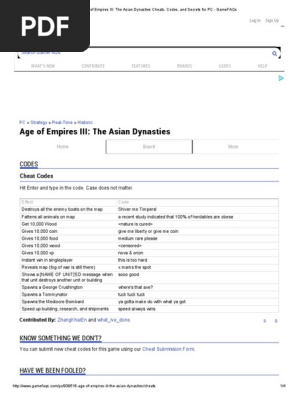 Cheat Code Age Of Empires 3 Asian Dynasties Mobile