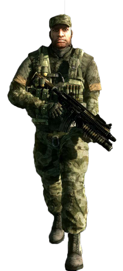 Battlefield bad company 2 characters. Bad company 2 also known as bad company 2 bfbc2 or bc2 is the tenth installment in the battlefield series and was developed by dice and published by electronic arts it is the sequel to battlefield. The player controls protagonist private preston marlowe and his exploits to steal gold from mercenaries along with his squad in the midst of a war between the united states and russia. Voiced by william roberts. Voiced by aleks mikic.
