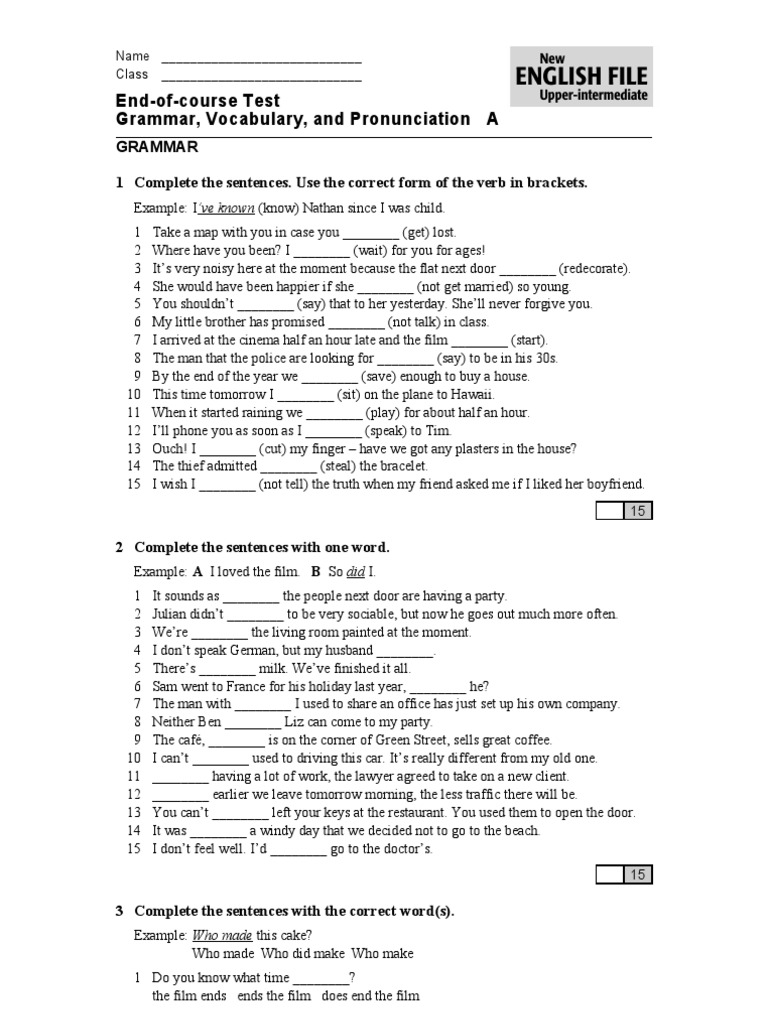 Name Class English File End Of Course Test Grammar English File Pre Intermediate Photocopiable C Oxford University Press 2012 2 Name Class End Of Course Test Grammar Vocabulary