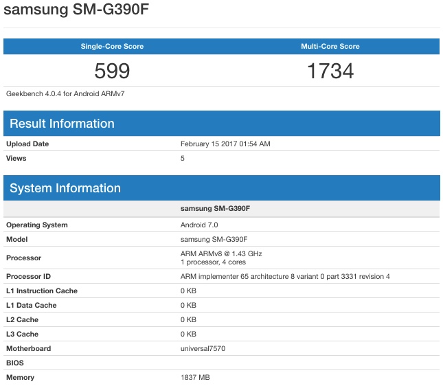 Samsung Galaxy Xcover 4 Now Appears On Geekbench With Android 7 0 And Exynos 7570 Soc Sammobile Sammobile