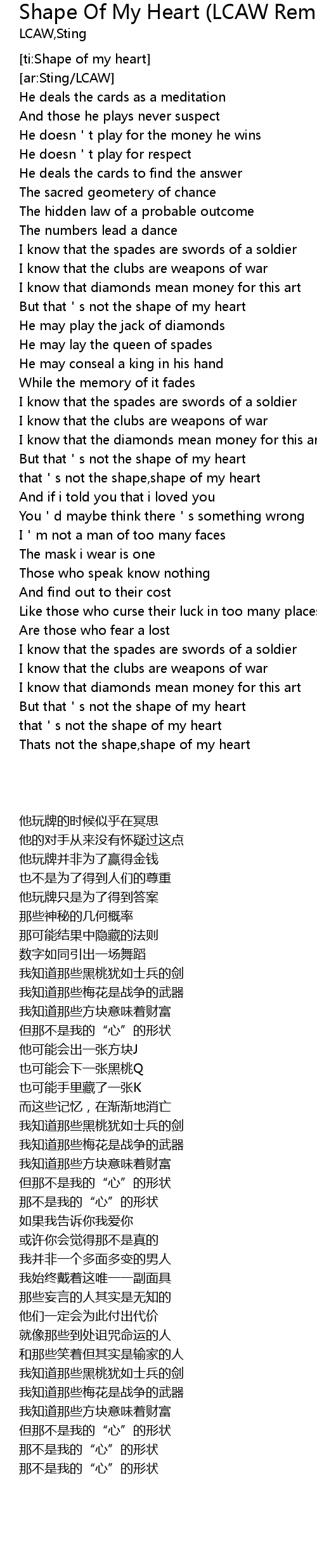 That S Not The Shape Of My Heart دانلود آهنگ Sting بنام Shape My Heart رادیو پلیر