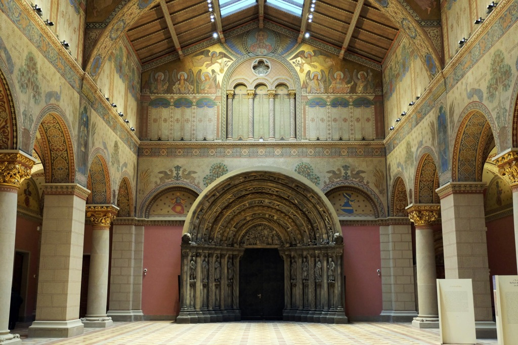 így készült el a román stílust megidéző román csarnok ahol olyan nagy méretű gipszmásolatokat tudtak bemutatni mint a freibergi dóm ma is látható aranykapuja.